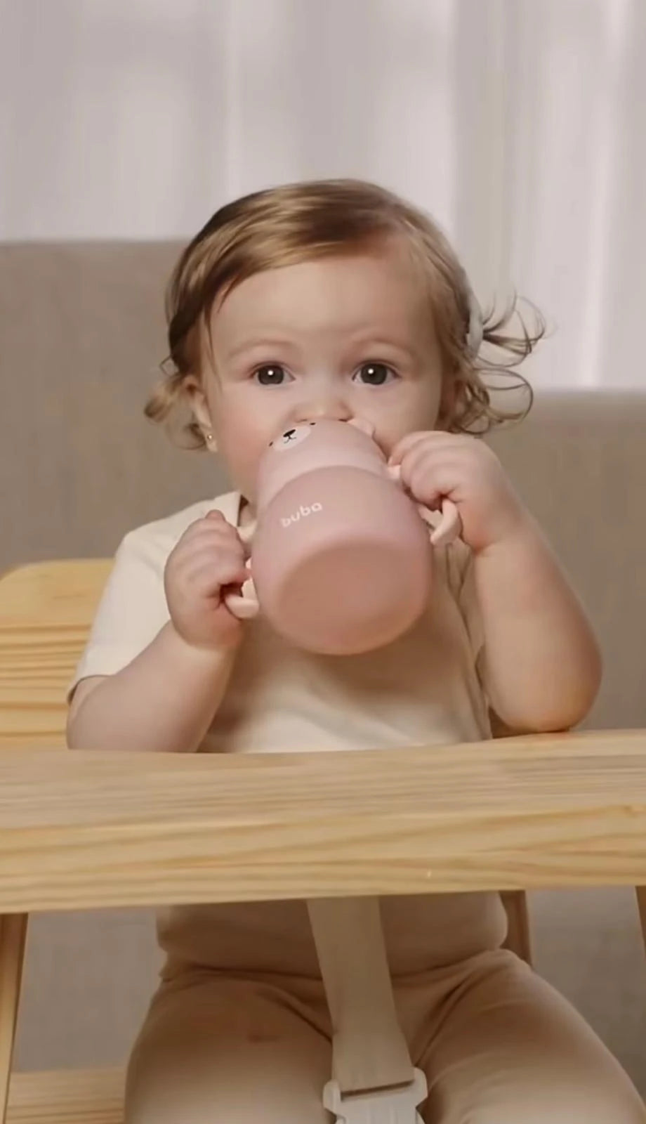 Copo Em Silicone Com Canudo Ursinho Rosa