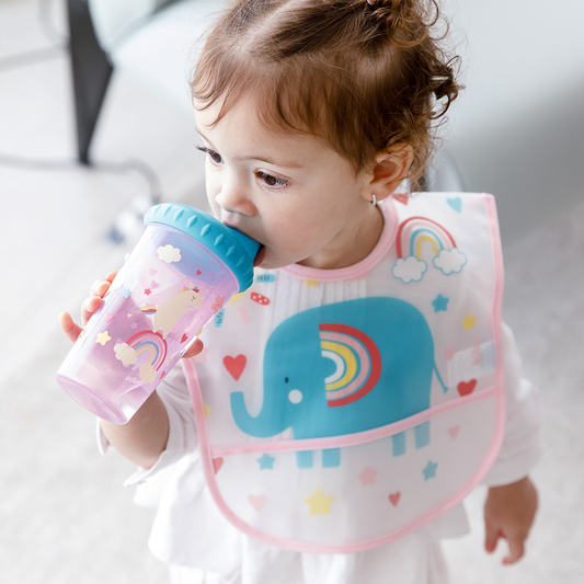 Babador Em Silicone Com Pega Migalhas E Estojo Arco Iris