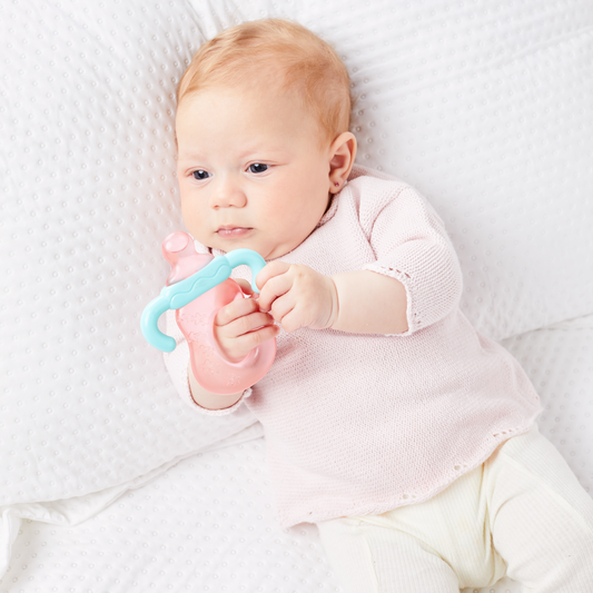 MORDEDOR EM SILICONE E BAMBU ELEFANTE ROSA
