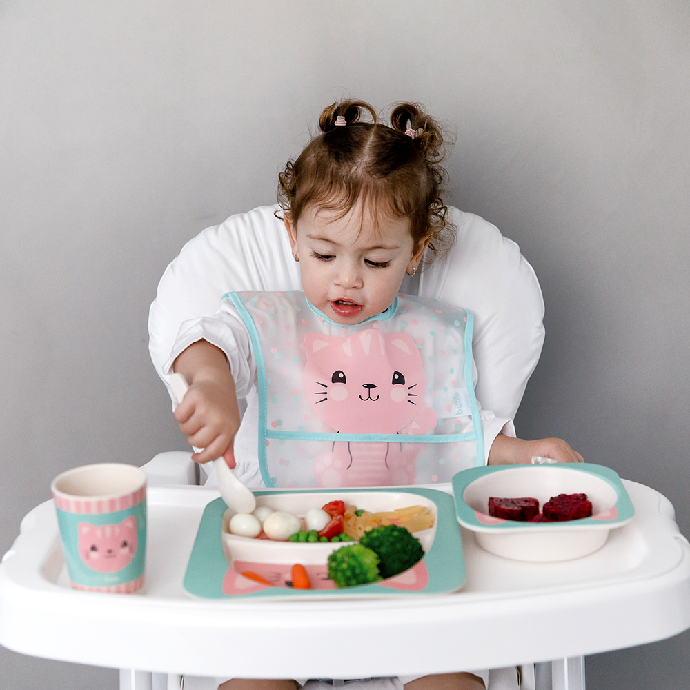 O Babador com Bolso Gatinho Buba é a escolha ideal para unir conforto, praticidade e estilo, tornando cada refeição do bebê mais organizada e agradável.