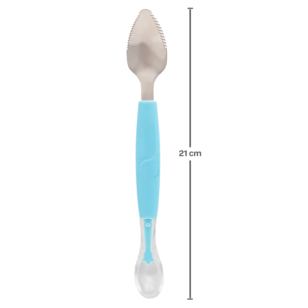 A Colher 2 em 1 Azul Buba é o acessório perfeito para tornar a introdução alimentar mais prática, segura e confortável, acompanhando o crescimento do bebê com versatilidade.