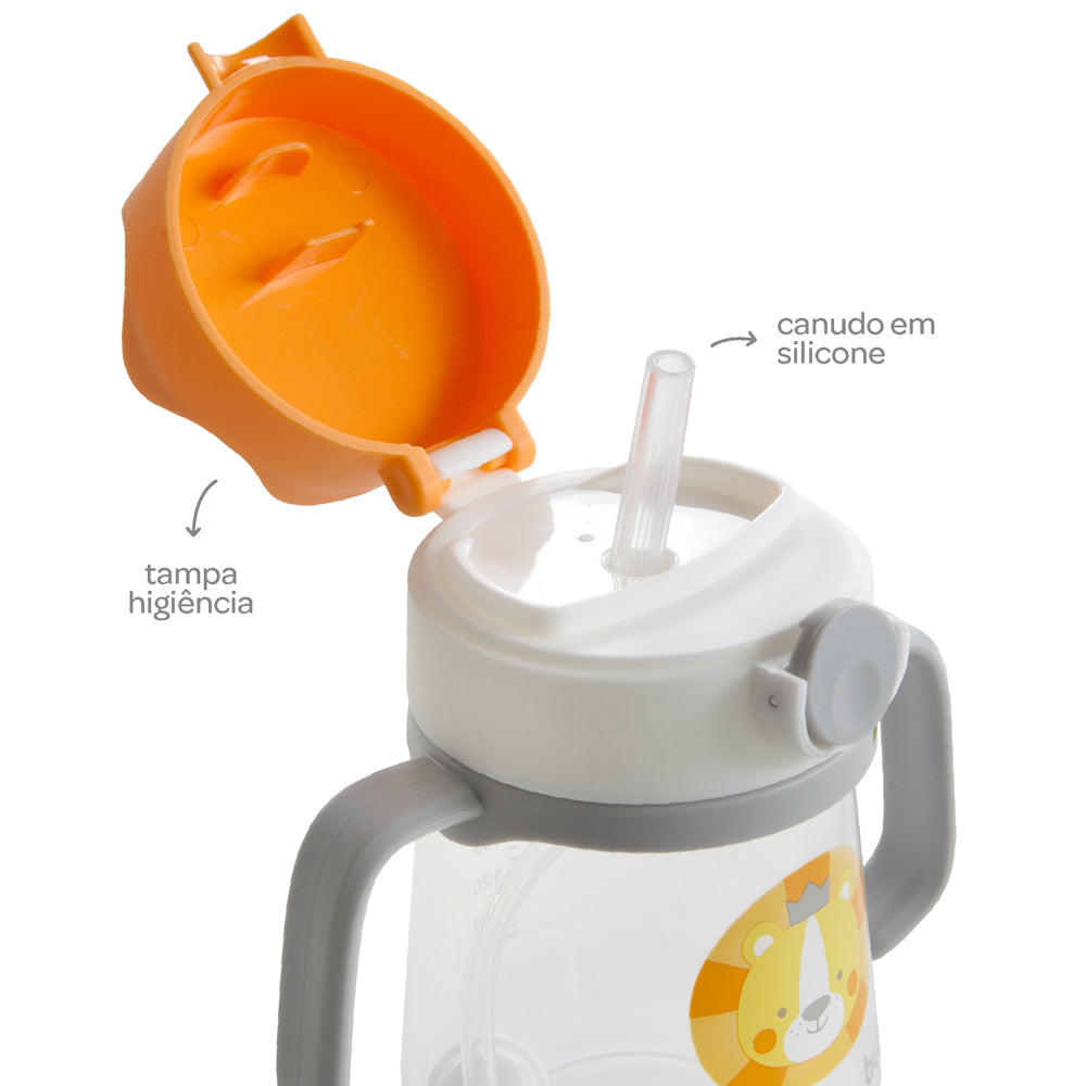 O design lúdico e colorido desperta o interesse da criança, tornando o momento da bebida mais prazeroso.