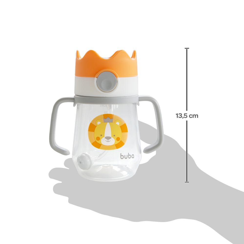 O Copo Canudo com Dispositivo Coroa Leão da Buba torna a hora de beber prática, segura e divertida. Com capacidade de 250 ml, possui válvula que acompanha o líquido, permitindo que a criança beba em qualquer posição sem engolir ar, prevenindo cólicas e desconfortos. O canudo em silicone macio garante conforto durante o uso, ideal para crianças a partir de 12 meses.
