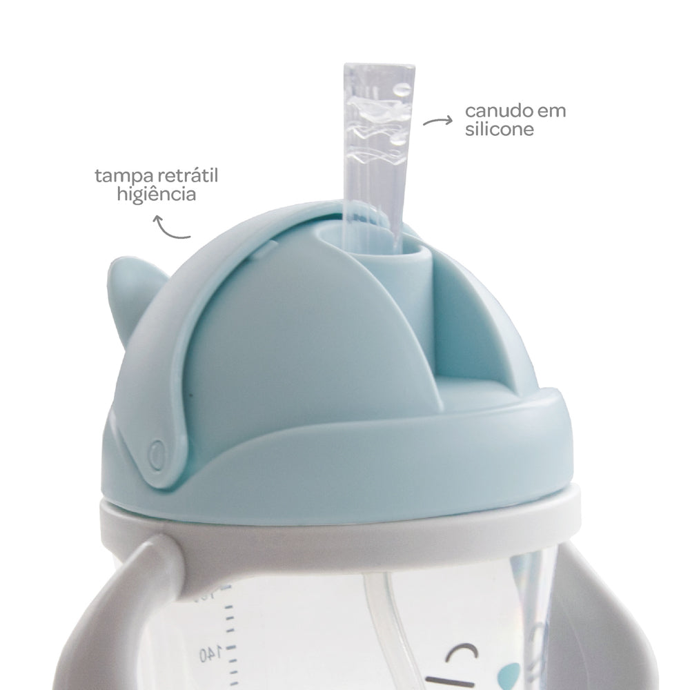 O Copo com Canudo e Dispositivo Gatinho Azul Buba é perfeito para acompanhar o desenvolvimento do bebê com praticidade, segurança e um toque de diversão.