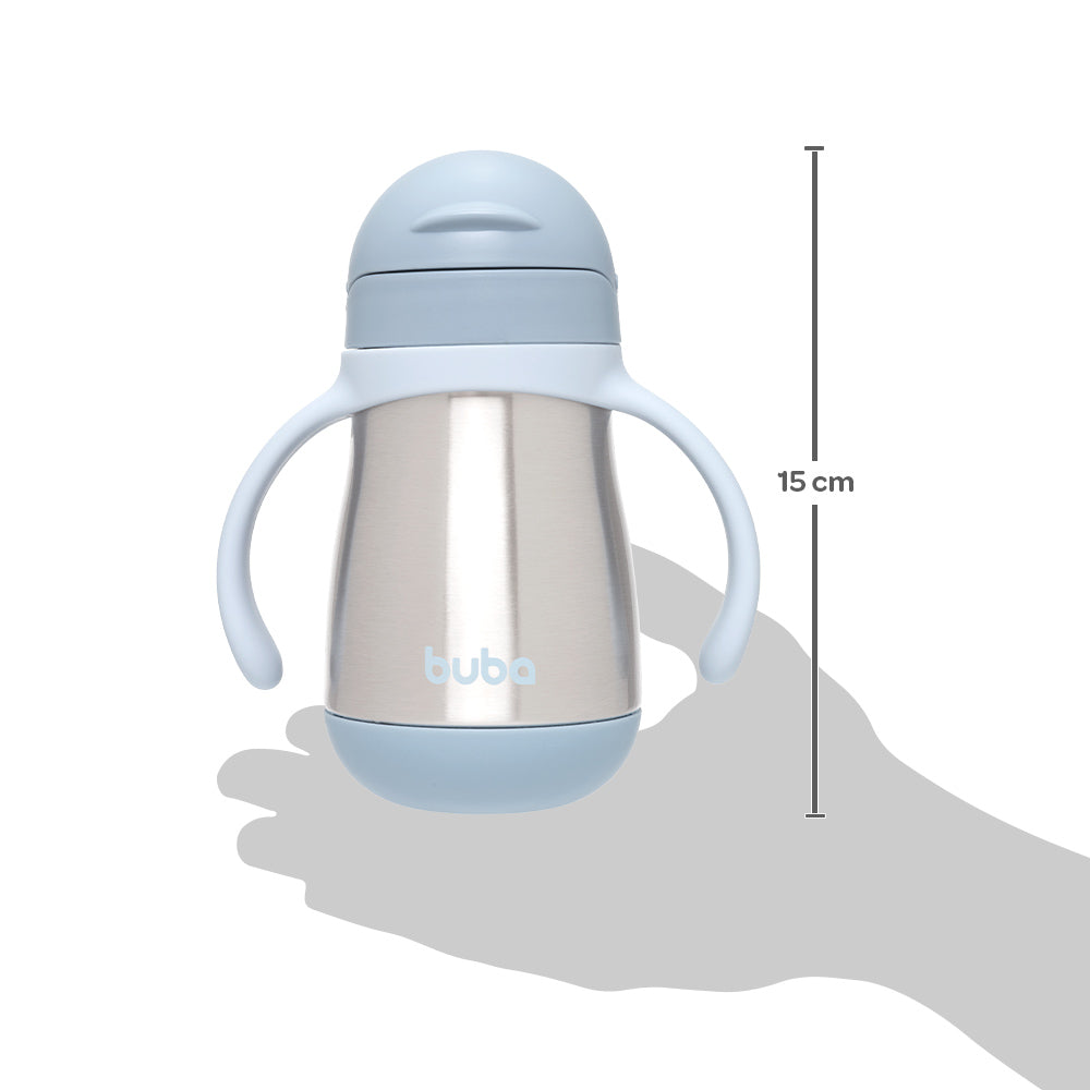 O Copo Térmico Parede Dupla com Alça Azul da Buba foi desenvolvido para acompanhar o pequeno em todas as fases da introdução alimentar, promovendo autonomia e praticidade. Produzido em aço inoxidável com parede dupla, mantém a temperatura de líquidos quentes ou frios por mais de 5 horas. Possui canudo em silicone, tampa retrátil e alças removíveis, facilitando o uso em diferentes fases do bebê. Ideal para passeios, viagens e para o dia a dia, alia segurança, conforto e higiene.