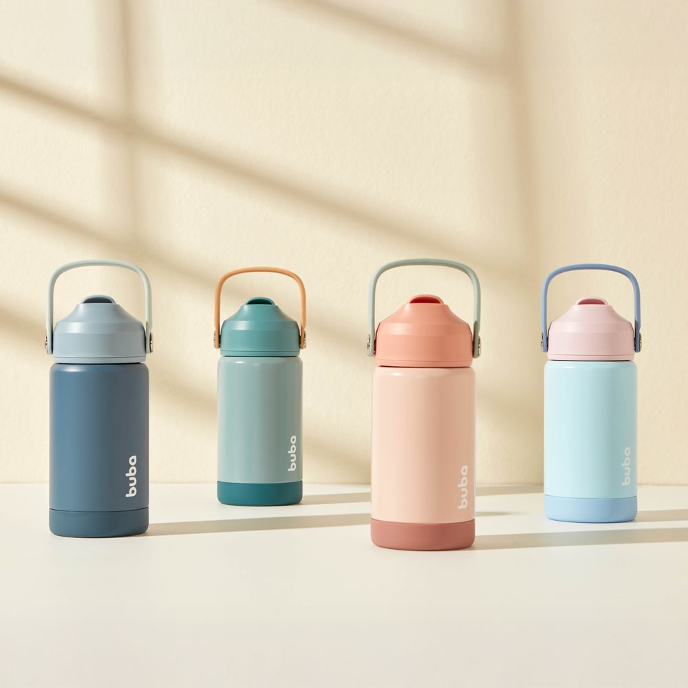 O copo combina design moderno com cores divertidas, tornando a hora da hidratação mais divertida e atraente para o pequeno.