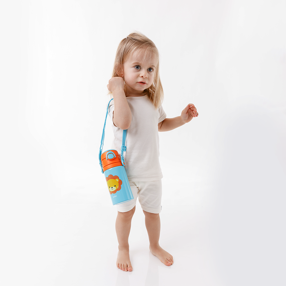Com estampa lúdica de leão, a garrafinha torna a hora da hidratação divertida, estimulando o uso regular pelos pequenos.