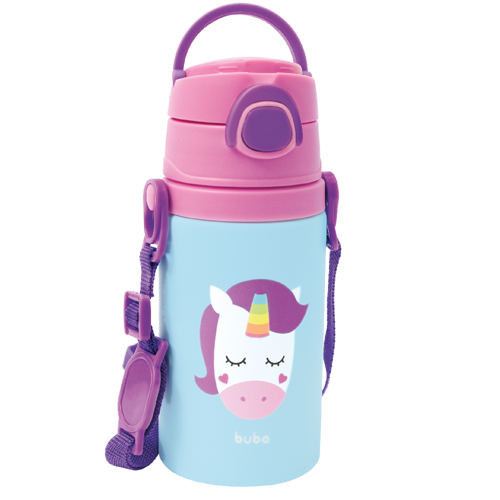 Com estampa lúdica de unicórnio, a garrafinha torna a hora da hidratação divertida, estimulando o uso regular pelos pequenos.