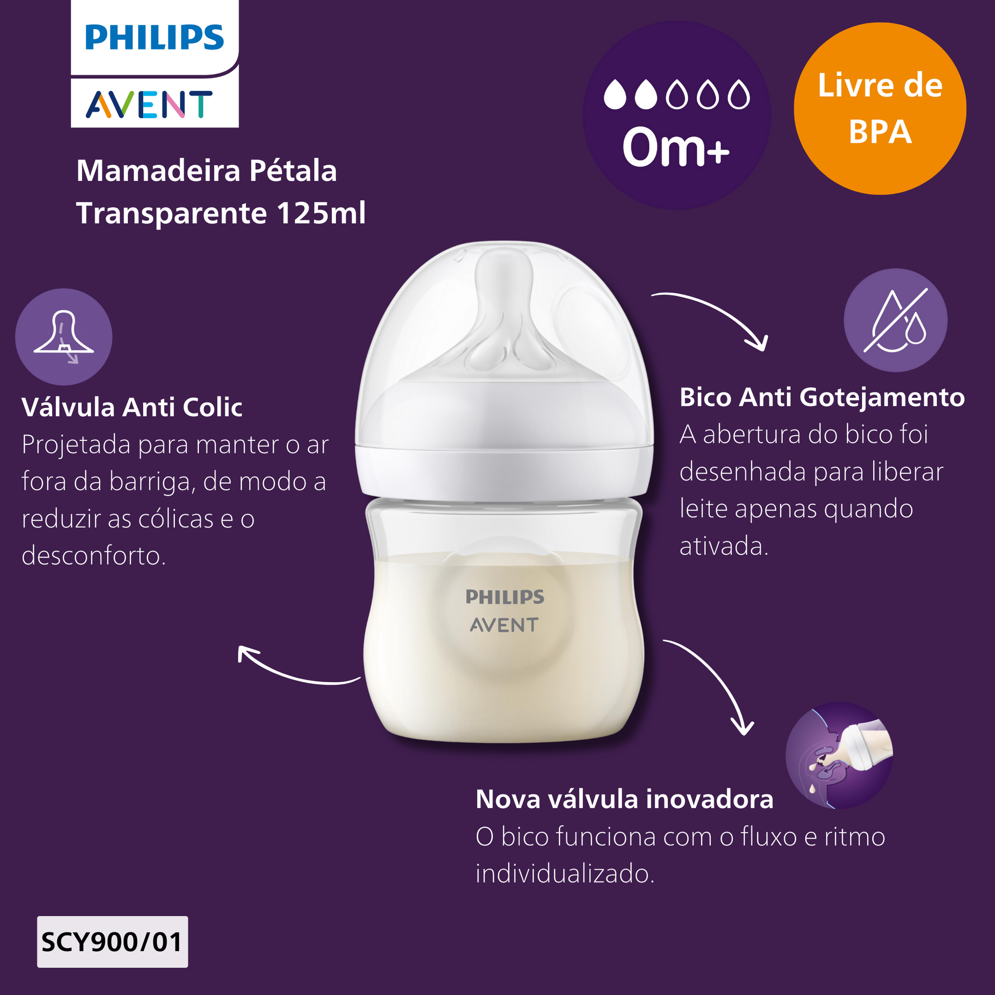 A Mamadeira Pétala 3.0 125ml da Philips Avent foi desenvolvida para proporcionar uma alimentação natural, segura e tranquila desde os primeiros dias de vida.