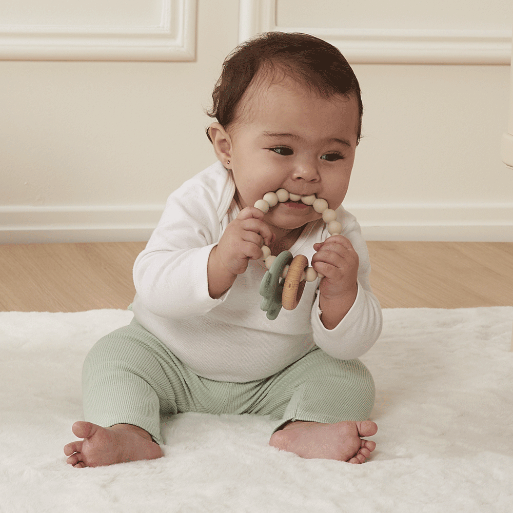 A combinação de silicone macio e bambu massageia suavemente as gengivas, ajudando a reduzir o desconforto do nascimento dos dentes.