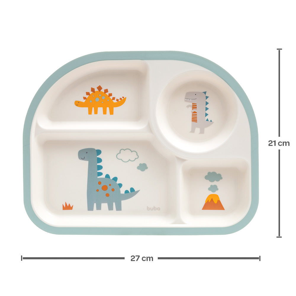 O Prato com Divisórias Dino da Buba transforma o momento das refeições em uma experiência divertida e organizada. Com 4 divisórias práticas, ele permite separar os alimentos de forma equilibrada, ideal para incentivar uma alimentação variada desde os primeiros meses da introdução alimentar. O design com o simpático dinossauro encanta as crianças e deixa o momento da refeição mais alegre.