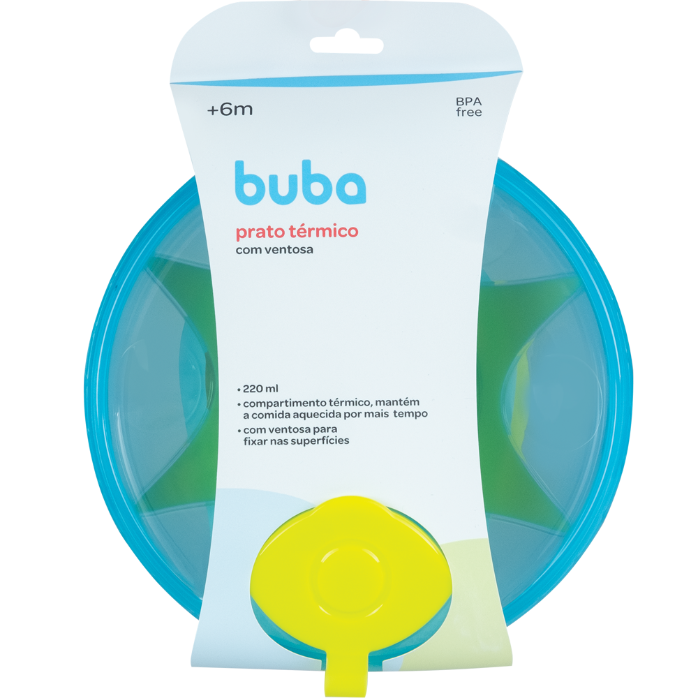 O Prato Térmico com Ventosa Azul da Buba mantém as refeições do bebê quentinhas por mais tempo, unindo praticidade e segurança. Com compartimento térmico para colocar água quente, ajuda a conservar a temperatura dos alimentos. A ventosa na base fixa o prato em superfícies planas, evitando que ele deslize ou tombe, garantindo mais autonomia e segurança na hora da alimentação.
